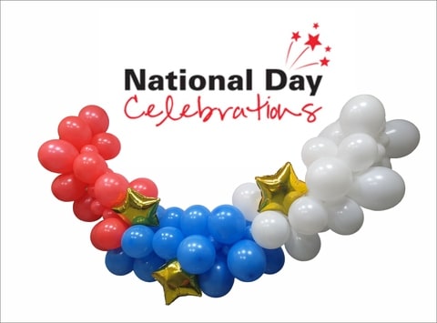 طقم إكليل بالون باللونين الأحمر والأزرق والأبيض